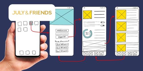 Diese arbeiten im ersten Schritt mit Papier und Bleistift und erarbeiten die Designs (auch Wireframes genannt) für die unterschiedlichen Bildschirme oder Endgeräte. Zum Beispiel für Smartphones oder für das Internet.
